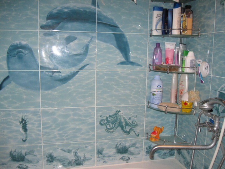 Кухня суперская!  Котенка, действительно, вам не хватает (кстати, а у кого еще есть кот, собачка, кроме меня?  )  Вы обязательно его заведете, и это будет очень счастливый день в вашей семье  Рыбки!!!  Митя очень любит рыбок, ходит в магазин их глядеть. Но котя тоже любит рыбок и, вдобавок, любит воду + ловить кого-то  ... Заглушки на шкафчиках - сразу видно, что младенцы в доме Цветы на столе - так здорово!  Дельфиники в ванной -  , твой муж такой молодец!  . У нас ванная выглядит вот так скромно: